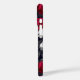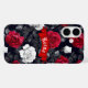Red, black, and white roses cover this beautiful Goth iPhone case. Personalise with your name in white blackletter font inside a red ribbon.