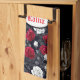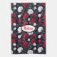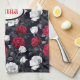 Red, black, and white roses cover this beautiful Goth kitchen towel. Personalise with your name in white blackletter font inside a black and white oval.