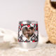 Red, black and white flowers and hearts pattern personalised photo tumbler. A romantic design for when you are in the mood for love. Cute gift for Valentine's Day, a wedding gift or anniversary.