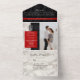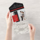 Make a bold and stylish statement with this elegant all-in-one wedding invitation, featuring a modern red, black, and white colour palette. Accented with a sleek marble background, monogram initials, and space for two personalised photos, this design blends contemporary minimalism with timeless sophistication. Add your wedding details and RSVP for a chic, all-in-one solution that reflects your unique love story.