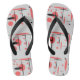 Get seen at the scene in these summer flip flops. This design features a geometric pattern of red, black and white lines and circles.