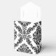 This elegant boxes feature a foliage damask design. Black and White adds a formal touch. Personalise these favour boxes with your names and wedding date. These favour boxes also work well for bridal shower parties.