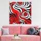 Pattern design with Waves of vibrant red, black and white colors evoking a storm and creating a sensation of light and permanent movement.