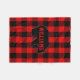 Rustic black and red lumberjack plaid, personalised bear blanket- Buffalo check plaid pattern background in red and black. Personalised name in matching red, retro style overlaid on a black bear shadow with a grey outline. Country Christmas holiday decor, lovely rustic country housewarming gift, or custom baby shower gift for new baby boy, woodland animals red nursery decor or rustic cabin decor.