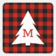 Red Black Buffalo Check Monogram Christmas Holiday Square Sticker