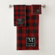 Red Black Buffalo Checks Pattern Monogram Name Yr Bath Towel Set