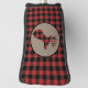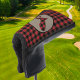 The background on this unique putter cover is a red and black buffalo plaid pattern. At the centre is a tan circle banner with a matching red and black plaid silhouette deer head. Be sure to see the matching golf club head covers in our store.