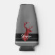 Customisable grey background around the cooler with black and white stripes on the lower half and a silhouette of a red and black buffalo plaid deer head on the front centre. Personalised with name in brush calligraphy script lettering overlayed on the deer. Makes a great gift idea for a man.