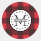 Red black Buffalo Plaid Lumberjack Name Monogram Classic Round Sticker