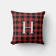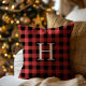 Red Black Buffalo Plaid Monogram Holiday Cushion