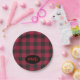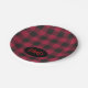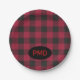 Red Black Buffalo Plaid Monogram Initials Paper Plate