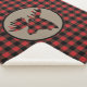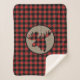 This attractive rustic sherpa blanket features a red and black buffalo plaid pattern. At the centre is a tan circle banner with a matching red and black plaid silhouette moose head.
