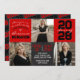 Red & Black Modern Chalkboard Graduation Photo Invitation on Black Chalkboard