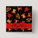 his coffee cup pattern on a black background includes a red area for personalisation with a monogram or initials on this name pin or badge.These coffee art designs will delight coffee lovers. This collection of original art features whimsy coffee, cappuccino and espresso coffee cups in bold and vibrant colours of red, orange, gold, brown, green and black. Fully customisable for name, business name, initials or other words.