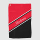 Go to the golf course in style with this golf towel. It has solid red and black colours with a diagonal stripe and a script font. This is a terrific gift for women and girl golfers playing in golf tournaments or recreational golf. Customise the name in the personalisation options.