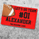 Cheer on your team with this Red Black Football Team Banner. Personalise with your athlete's number and name, and the name of the team. You can even change the message. Show off your team spirit this summer.