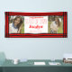 Hang this Red Black Geometric Two Photos Graduation Banner to celebrate your graduate. Personalise with two photos, name, school, and class year. This class of 2024 school colours banner features feminine font and a decorative red and black border.