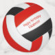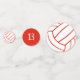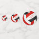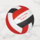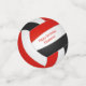 This volleyball birthday party confetti with customisable text for girls or boys features a volleyball graphic with red, black and white panels on the front of each confetti piece and a simple white volleyball or the child's age on the back of each confetti piece with a red background - by katz_d_zynes