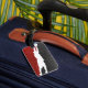 A striking red and black faux glitter split design, this basketball luggage tag features a tall white silhouette of a player mid-shot, accented by a glittery black-and-silver background on the reverse. Personalise with your jersey number and name in clean white text. Ideal for basketball fans, travelers, and glam sports gear lovers.
