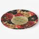 Red Black Gold Glam Floral Bridal Shower Paper Plate