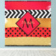 Red Black Gold Glitter Brush Stroke Monogrammed design.