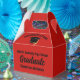 This modern red and black custom senior graduation party favour box features your high school or college name for the class of 2025. Customise with your graduating year under the chic handwritten script and black grad cap for a great personalised graduate keepsake gift.