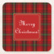 Red Black Green Cosy Plaids Merry Christmas Square Paper Coaster