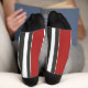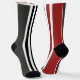 Red Black Grey Vertical Stripes Pattern Socks designed by Nisha Prabhu. Step up your sock game with these bold and stylish Red Black Grey Vertical Stripes Pattern Socks! Made of a comfortable and stretchy material, these socks feature a classic vertical stripe pattern in vibrant red, sleek black, and cool grey. Perfect for adding a pop of colour and personality to any outfit, these socks are sure to make a statement. Whether you're dressing up for a special occasion or just wanting to add some fun to your everyday look, these socks are the perfect choice. Upgrade your sock collection today with these eye-catching and trendy socks!