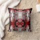 Featured is a symmetrical design in shades of dark red, black, grey and white, which combine to project a contemporary spin on a traditional Native American/ Southwest inspired style. This is a lush, striking, and sophisticated design, which evokes tribal art and mosaic tile/tapestry patterns and is also suggestive of Spanish mission decorative decor. The look is polished but comfortable for living area, bedroom, workspace, terrace, or patio decor, inspiring a feeling of warmth and relaxation. There is much artistic potential with this accent piece, which fits into numerous interior design styles (innovative to classic), from farmhouse to suburban ranch to rustic hacienda to urban loft/high rise to retro/vintage.