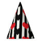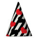 Red Black Hearts On Black White Stripes Party Hat