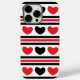 Red Black Hearts Stripes Pattern Valentines Day Case-Mate iPhone 14 Pro Max Case.