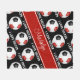 This fun soccer themed fleece blanket for girls features the realistic image of a soccer ball that has red, black and white panels patterned at an angle with the sporty font text phrase "I LOVE SOCCER" in white that stretches between the angled rows of soccer balls - personalise her name in a sophisticated handwritten font on a similarly angled chunky red colour strip - background is customisable black - by katz_d_zynes