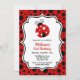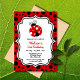 Red Black Ladybug Frame Polka Dots Kids Birthday Invitation