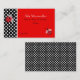 Fun black, white, and red mummy play date / calling card, with a red text area and black and white polka dot pattern, on the left side and back of the card. Graphics of two red and black ladybugs decorate the front of this pretty card. Personalise the white and black text for yourself or as a great gift idea for any mum or mum to be.