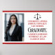 This modern red and black custom law school photo graduation party poster features modern typography for a class of 2024 graduate. Customise with your graduating year under the scales of justice for great personalised lawyer decor for a graduating attorney along with a student photograph.