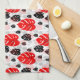 Red Black Leaf Illustration Pattern Design Tea Towel