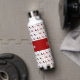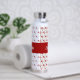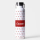 Red Black Modern Hearts Retro Monogram Name Water Bottle