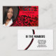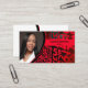 A red and black numbers background on this design features a photo placeholder on the left with template name on the right. The back includes a coordinated design and colours with text fields for the business name and details. Replace the placeholder photo with your vertical format photograph. Fill in the template fields or edit using the design tool to select a font style, size, and colour you like. The placeholder photo is courtesy pixabay.com.