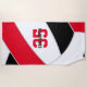 This custom colours volleyball beach towel features the image of a simple, abstractly oversized volleyball with red, black and white panels - personalise with the athlete's name & jersey number -- you can EASILY change the colours on this towel: go ahead and smash that blue "Edit Design" button above and change the volleyball's red & black panels and text colours to your team's colours or favourite colours - by katz_d_zynes