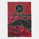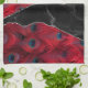Red Black Peafowl Marble Agate Glam Tea Towel