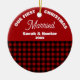 Commemorate your engagement with this charming rustic Christmas ornament from Plaid Perfection. Designed with a split background—classic red and black buffalo plaid on the bottom and sleek red on top—this festive ornament features the phrase *Our First Christmas Married* curved along the top. Personalise with the couple’s names and year to create a keepsake that celebrates love and new beginnings. Perfect as a gift for engaged couples or as a special addition to your own tree, this round ornament is a timeless way to mark this milestone and treasure the memory for years to come.