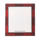 A notepad featuring a flannel inspired red and black plaid design. Personalise with your name.