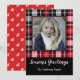Red Black Plaid Season's Greetings with Photo Holiday Card