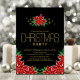 Share the joy and invite your friends and loved ones to your Christmas celebration with this elegant black with gold text poinsettia floral Christmas party invitation.