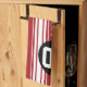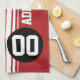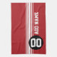 Red Black Racing Stripes Custom Name Number Tea Towel