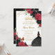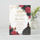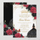 Red Black Roses Floral Dress Silver Quinceañera Invitation