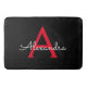 Red Black Script Girly Monogram Name Bath Mat