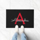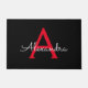 Black and Red Simple Script Monogram Name and Initial House Doormat. This makes the perfect sweet 16 birthday, wedding, bridal shower, anniversary, baby shower or bachelorette party gift for someone that loves glam luxury and chic styles.
