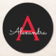 Red Black Script Girly Monogram Name Round Paper Coaster