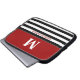 This Red black striped laptop case with a simple monogram design, this style is a lovely personalised gift choice for any lady like your friends, bride, bridesmaids, mother, mother-in-law, sister, sister-in-law or teachers.